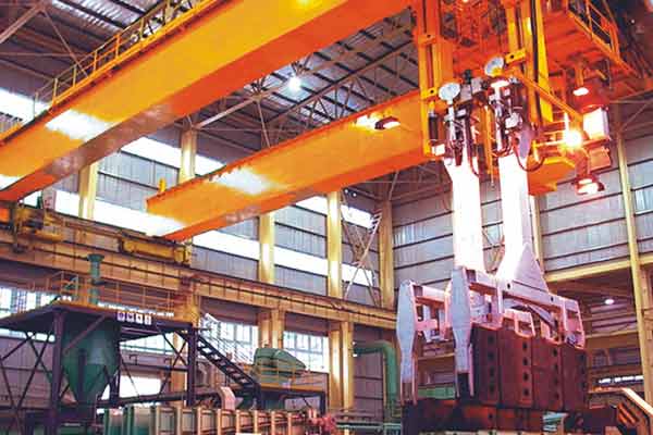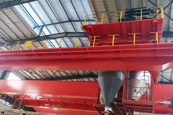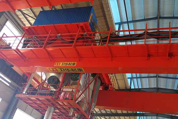 The Roasting Multi-Function Crane whole machine is mainly composed of tool trolley, bridge, crane traveling mechanism, electric hoist, electric control system. The tool trolley is composed of material absorption and unloading system, clamp device, trolley, the trolley traveling mechanism and cabin.