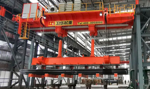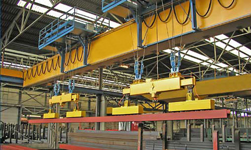 Electromagnetic girder bridge cranes are usually bridge cranes with electromagnets, which are used in many machinery manufacturing plants and steel plants. It is a special crane for handling and moving steel, steel plate and steel pipe mainly by electromagnetic. It is mainly used for stacking the finished steel plates, billets or profiles from conveying to the production line of the continuous rolling workshop, and for loading and unloading vehicles or stacking operations in the finished product warehouse.