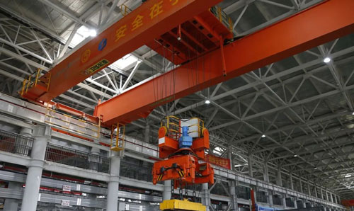 It is mainly composed of girder, driving mechanism, lifting trolley, electrical components and special electromagnetic spreader.
