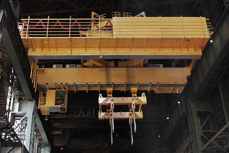 As one of the series products of foundry cranes, charging cranes are very important in steel production. As crane equipment used in foundries and steel mills, in most cases, charging cranes are mainly used to transport molten metal. Charging cranes are sometimes called teeming cranes. Both the charging crane and the ladle crane are foundry cranes. The main difference between it and the ladle crane is that its main hoisting mechanism does not work completely independently, and both of its hooks need to have high loads. Ability.