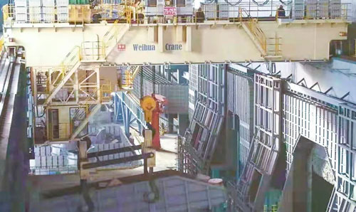 Loading cranes have very high requirements for safe and redundant design and precise control of the load. The charging crane needs to transport metal materials to the furnace, but since the heat emitted by the furnace usually exceeds 70 degrees, it must not only have a fireproof and high temperature resistant design, but also have a high-load lifting capacity. The fully automated technology of Weihua loading cranes can satisfy the precise placement of loading cranes and the safe and stable transport of loads.